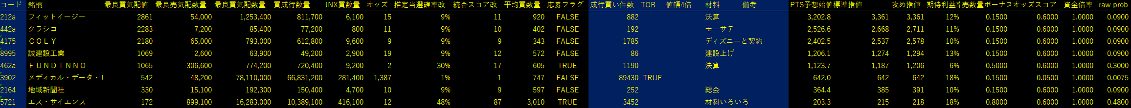 当選確率に関しては応募フラグは無視し、経験則的に当たりそうなものに参加する。