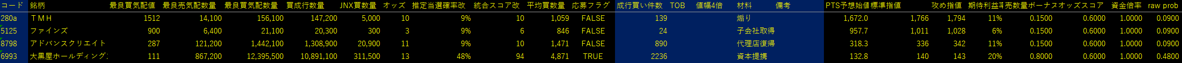 低位だが少しPTSの約定があるので、あまり追いかけずに予想始値程度で出してサクッと終わりにしたい。