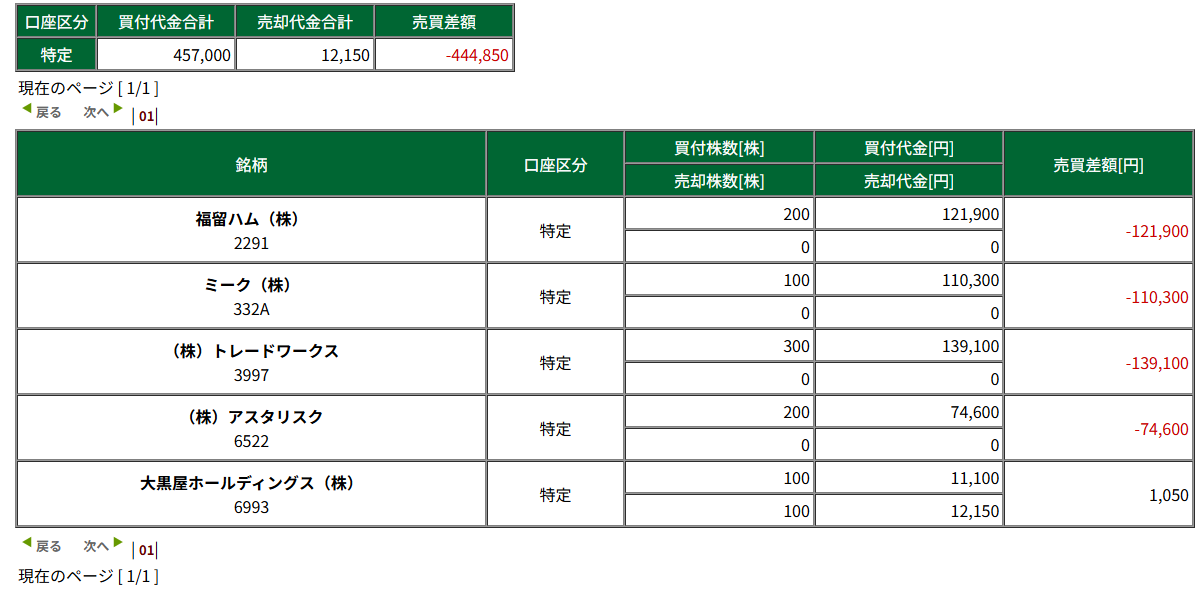 全体としてはまずまずの結果だったが、引け注文を忘れるという致命的なミスをやってしまい、現金もギリギリだったのであわてて入金して間に合わせることになった。