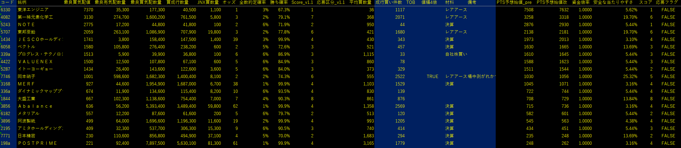 決算関連を除外すると引けの候補銘柄がほとんどなく、結果として需給ゲート通過が4銘柄となったが、しっかりとれた。