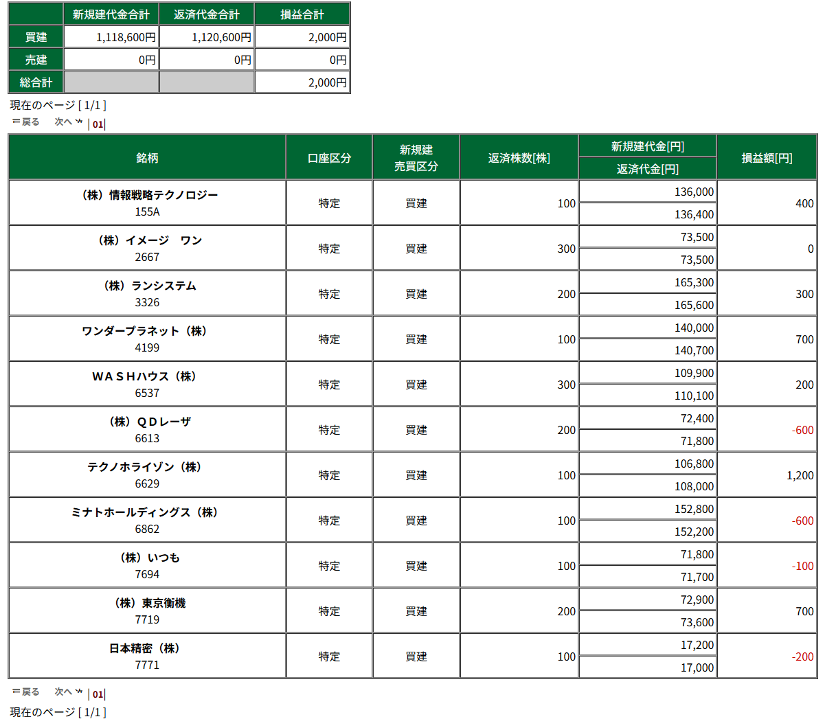 ・100円~2000円台の銘柄(呼び値が1tickかつロットを増やしやすい)、値嵩も記録用に探す。