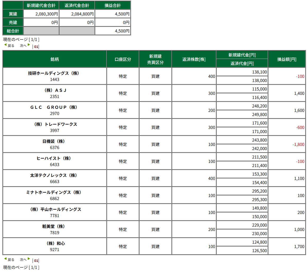 税引き前損益 +4,500円