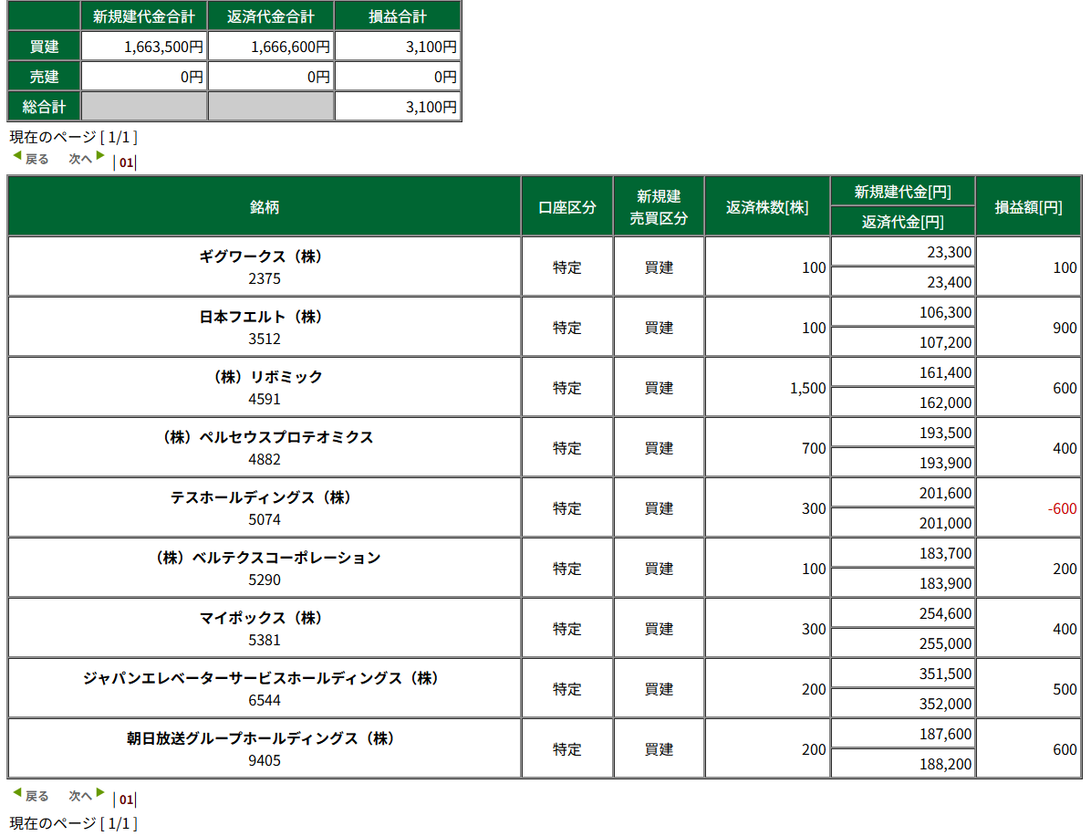 ・100円~2000円台の銘柄(呼び値が1tickかつロットを増やしやすい)、値嵩も記録用に探す。