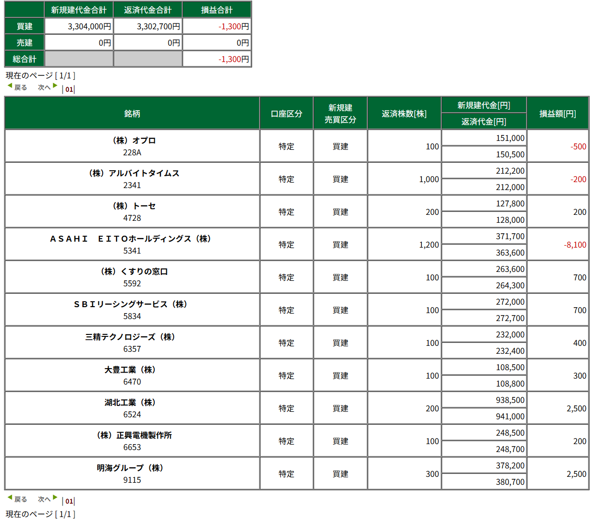 ・100円~2000円台の銘柄(呼び値が1tickかつロットを増やしやすい)、値嵩も記録用に探す。