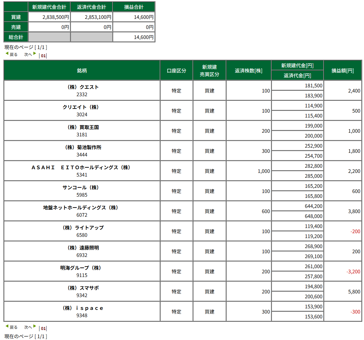 税引き前損益 +14,600円