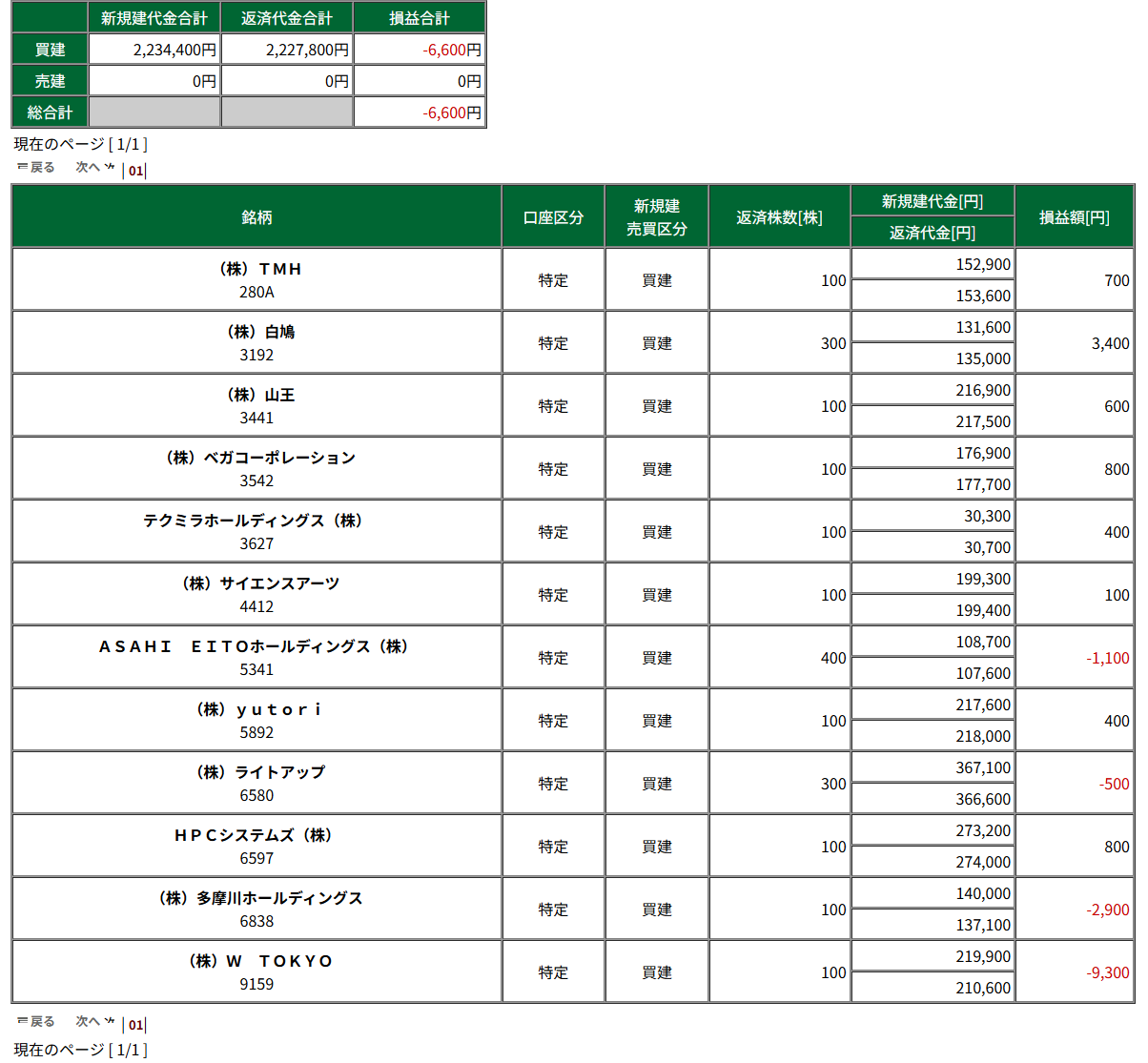 ・100円~2000円台の銘柄(呼び値が1tickかつロットを増やしやすい)、値嵩も記録用に探す。